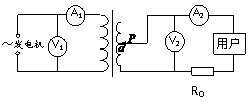 2008年春节前后,我国部分省市的供电系统由于气候原因遭到严重破坏。为此,某小区启动了临时供电系统,它由备用发电机和副线圈匝数可调的变压器组成,如图所示,图中R0表示输电线的电阻。滑动触头P置于a处时,用户的用电器恰好正常工作,在下列情况下,要保证用电器仍能正常工作,则