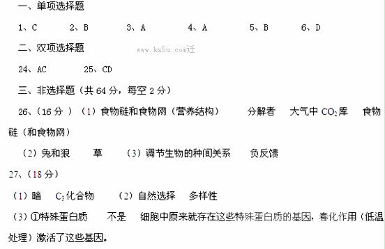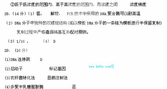 理科综合生物答案
