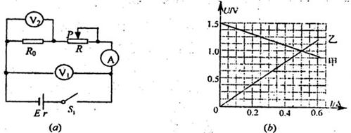 的测量数据.并根据数据 描绘了如图(b)所示的两条U-I直线.回答下列问题:
