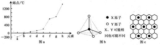 (2)第二周期元素中,除Be、B、Ne三种元素外,其他元素的氢化物沸点如表1所示,其中E的化学式为 ;第三周期元素单质的熔点(℃)变化如图a所示,其中h的元素符号为 。