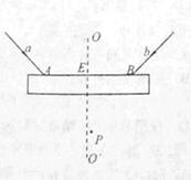 两束不同频率单色光以45°的入射角射到玻璃砖的上面表面上入射点分别为A、B。直线
