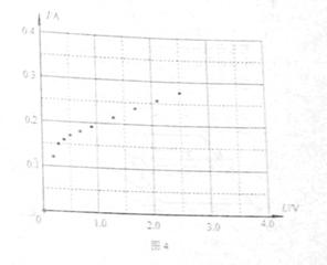 ②某同学试验时测得多组小灯泡两端的电压U与对应通过小灯泡的电流I,将U、I对应点都标在了图4的坐标系中,请你在描出小灯泡的伏安特性曲线;