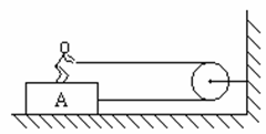 (16分)如图8,人重600牛,木块A重400牛,人与A、A与地面间的摩擦系数均为0.2,现人用水平力拉绳,使他与木块一起向右匀速直线运动,滑轮摩擦不计,求(1)人对绳的拉力.(2)人脚给A的摩擦力方向和大小。
