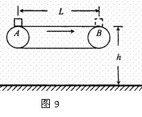 36、(20分)如图9所示为车站使用的水平传送带装置的示意图.绷紧的传送带始终保持3.Om/s的恒定速率运行,传送带的水平部分AB距水平地面的高度为A=0.45m.现有一行李包(可视为质点)由A端被传送到B端,且传送到月端时没有被及时取下,行李包从B端水平抛出,不计空气阻力,g取lOm/s2