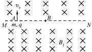 从MN上的A点由下方垂直于MN射入上方的磁场区.已知它在运动过程中先后两次经过MN上的B点,且这两次之间的时间间隔为t.求: