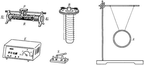 33.(16分)如下图所示,铁架台支架上用绝缘细丝线悬挂一个闭合金属圆环A,另有一个带铁心的线圈B、电源E、开关S、滑动变阻器R及导线若干.