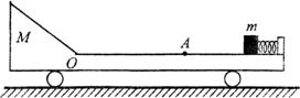 36.(18分)如图所示,光滑水平面上有一长板车,车的上表面0A段是一长为L的水平粗糙轨道,A的右侧光滑,水平轨道左侧是一光滑斜面轨道,斜面轨道与水平轨道在O点平滑连接。车右端固定一个处于锁定状态的压缩轻弹簧,其弹性势能为Ep,一质量为m的小物体(可视为质点)紧靠弹簧,小物体与粗糙水平轨道间的动摩擦因数为μ,整个装置处于静止状态。现将轻弹簧解除锁定,小物体被弹出后滑上水平粗糙轨道。车的质量为 2m,斜面轨道的长度足够长,忽略小物体运动经过O点处产生的机械能损失,不计空气阻力。求: