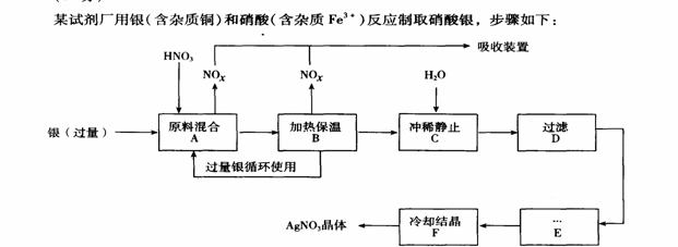 (5)制得的硝酸银中一般还含有少量的硝酸铜,一种除硝酸铜的方法是:在步骤E之前加少量的Ag2O,使Cu2+沉淀为Cu(OH)2,反应后过滤除去,该反应的化学方程式 。