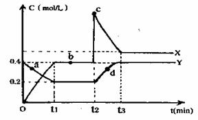 (4)X.Y是均由C.D两元素组成的化合物,且C.D在X.Y中的价态相同,某温度下相互转化时的量变关系如右图: