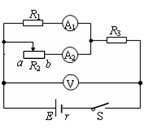 14. 在如图所示的电路中,R1和R3均为定值电阻,R2为滑动变阻器,电源有一定的内阻.闭合开关S,三个电表A1、A2和V的示数分别用I1、I2和U表示.现将R2的滑动触点向b端移动,则三个电表示数的变化情况是