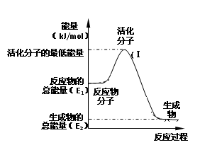 比平均能量高得多的反应物分子发生碰撞时才可能发生化学反应,这些分子称为活化分子。使普通分子变成活化分子所需提供的最低限度的能量叫活化能,其单位通常用kJ/mol表示。请认真观察右图,然后回答问题。