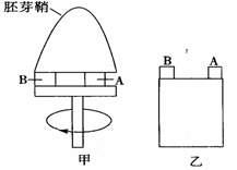 5、将附有琼脂块A和B的胚芽鞘顶端放在旋转