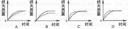 8.将A g块状碳酸钙跟足量盐酸反应,反应物损失的质量随时间的变化曲线如下图的实线所示,在相同的条件下,将B g (A>B)粉末状碳酸钙与同浓度盐酸反应,则相应的曲线(图中虚线所示)正确的是