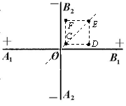 理论研究表明,无限大的均匀带电平面在周围空间会形成与平面垂直的匀强电场。现有两块无限大的均匀绝缘带电平板,正交放置如图所示,A1B1两面正电,A2B2两面负电,且单位面积所带电荷量相等(设电荷不发生移动)。图中直线A1B1和A2B2分别为带正电平面和带负电平面与纸面正交的交线,O为两交线的交点,C、D、E、F恰好位于纸面内正方形的四个顶点上,且CE的连线过O点。则下列说法中正确的是