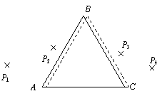 如图所示,某同学为了测量截面为正三角形的三棱镜玻璃折射率,先在白纸上放好三棱镜,在棱镜的左侧插上两枚大头针P1和P2,然后在棱镜的右侧观察到 P1像和P2像,当P1的像被恰好被P2像挡住时,插上大头针P3和P4,使P3挡住P1、P2的像,P4挡住P3和P1、P2的像.在纸上标出的大头针位置和三棱镜轮廓如图所示。