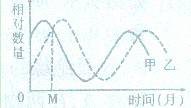 4.右图表示某系统中甲、乙两种群在一段时间内数量变化情况。下列有关叙述不正确的是![]()