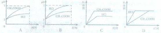 12.在体积均为1L,pH均等于2的盐酸和醋酸溶液中,分别投入0.23g Na,则下图中符合