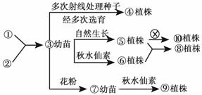 8.①、②两植株杂交得到③,将③作进一步处理,如下图所示。有关分析错误的是