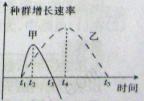 5.右图表示-个生物群落中甲、乙两个种群的增长速率随时间变化的曲线,下列叙述中正确的是