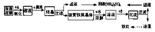(4)往铵黄铁矾(化学式为:(NH4)2Fe6()SO4)4(OH)12)溶液中加入溶液B至pH为5时产生沉淀,请写出产生沉淀的离子方程式: