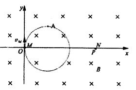 所在平面的范围足够大的匀速磁场,磁感应强度为B。某时刻有两个粒子M、N分别从坐标原点O及