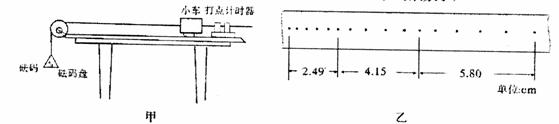 (1)在小车某次运动过程中,打出了一条纸带如图乙所示。计时器打点的时间间隔为0.02s,从比较清晰的点起,每5个点取一个计数点,并量出了相邻计数点之间的距离。该小车的加速度a= m/s2.(结果保留三位有效数字)