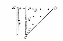 23.如图所示,M、N为两块带等量异种电荷的平行金属板,两板间电压可取从零到某一最大值之间的各种数值。静止的带电粒子带电量为+q,质量为m(不计重力),从点P经电场加速后,从小孔 Q进入N板右侧的匀强磁场区域,磁感应强度大小为B,方向垂直于纸面向外,CD为磁场边界上的一绝缘板,它与N板的夹角为a=45°,孔Q到板的下端C的距离为L。当M、N两板间电压取最大值时,粒子恰垂直打在CD板上。求