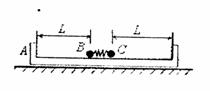,槽内有两个小球B、C,它们的质量分别是mB=m,mC=2m,两球间是很短的被压缩的轻弹簧(球与弹簧不连接),且B球到木槽左端、C球到木槽右端的距离均为L,这时弹簧的弹性势能为