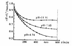 浓度均为1.0×10-3mol·L-1的试样,分别静 置800min至FeO42-浓度不再改变,结