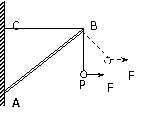 16. 如图,轻杆A端用光滑水平铰链装在竖直墙面上,B端吊一重物P,并用水平绳结在墙C处,在水平向右力F缓缓拉起重物P的过程中杆AB所受压力的大小为N,水平绳BC受到的拉力的大小为T的变化情况是: