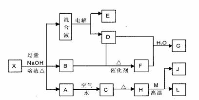 (15分)有一化合物X,其水溶液为浅绿色,可发生如下的转化关系(部分反应物、生成物从略)。其中B、D、E、F均为无色气体,M、L为常见的金属单质,C为难溶于水的红褐色固体。在混合液中加入BaCl2溶液可生成不溶于稀盐酸的白色沉淀,H和M反应可放出大量的热。