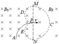 介子沿垂直于磁场的方向射入匀强磁场B1中,其轨迹为圆弧AP,P在MN上,