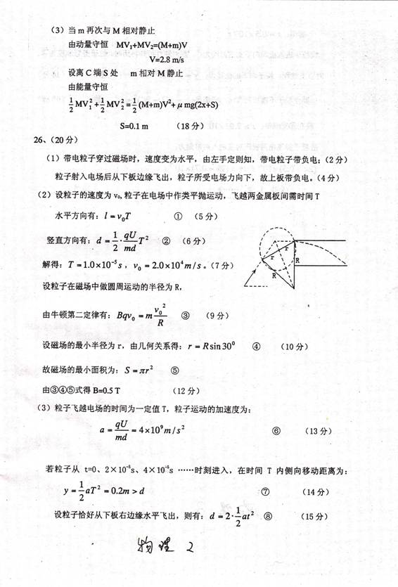 (2)若圆形磁场区域的最小面积为S=3.14×lO-4m。,对应的磁感应强度B为多大?