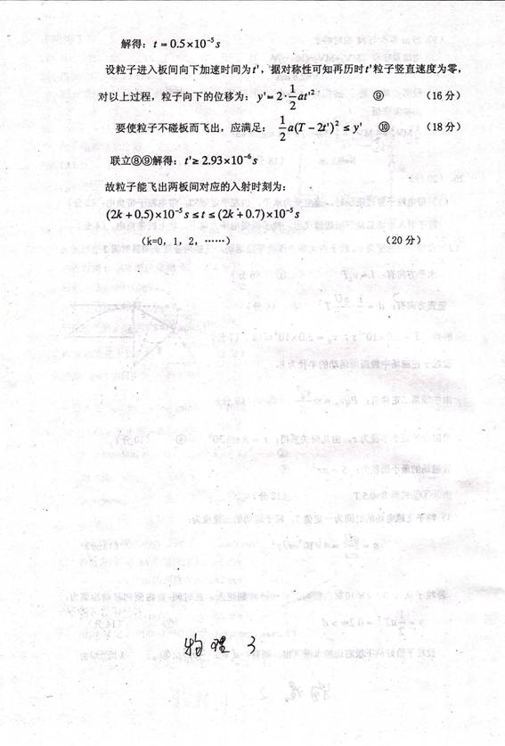 (3)若在两金属板上加上如图乙所示电压,则在哪些时刻进入的带电粒子能够飞出两板间而不