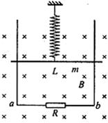 21、两根足够长的光滑导轨竖直放置,间距为L ,底端接阻值为R 的电阻。将质量为m的金属棒悬挂在一个固定的轻弹簧下端,金属棒和导轨接触良好,导轨所在平面与磁感应强度为B 的匀强磁场垂直,如图所示。除电阻R 外其余电阻不计。现将金属棒从弹簧原长位置由静止释放。则( ) A.金属棒将振动,动能、弹性势能与重力势能的总和保持不变