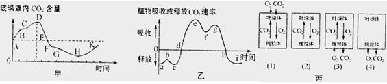 D.乙图中defgh与横轴围成的面积可代表植物一昼夜积累的有机物量