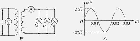 的相同灯泡.各电表均为理想交流电表,输入端接人如图乙所示的交变电压,则以下说法中不正确的是: