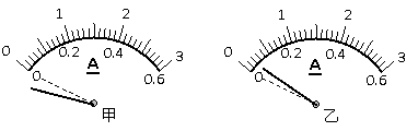 (7)实验时,若发现电流表指针摆动分别出现了如下图甲、乙所示的两种情况. 请分析在使用电流表时分别存在什么问题,并写在下面的横线上.(2分)
