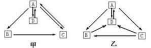 下列有关人体体液中物质交换(甲)和生态系统中碳循环(乙)的示意图中,描述正确的是
