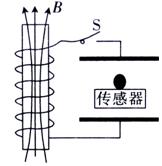 匝的线圈连接,线圈置于方向竖直向上的均匀变化的磁场中,两板间放一台小压力传感器,压力传感器上表面绝缘,在其上表面静止放置一个质量为