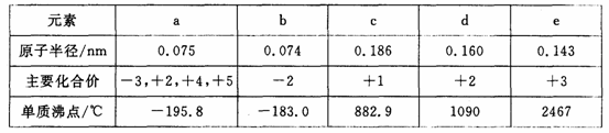 7.a、b、c、d、e为原子序数依次增大的五种短周期元素,下表列出了它们的一些重要参数: