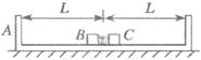 ,现用这两个滑块将很短的轻质弹簧压紧(两滑块与弹簧均不连接,弹簧长度忽略不计),此时B到木槽左端、C到木槽右端的距离均为L,弹簧的弹性势能为