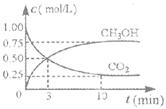,测得CO2和CH3OH(g)的浓度随时间变化如右图所示。/