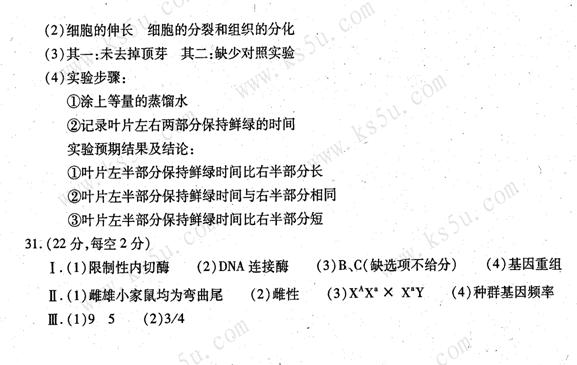 30.(20分)植物激素对植物的生长发育产生显著调节作用,植物的生长发育是由多种激素间表现为相互协调、共同凋节的。请分析回答下列问题: