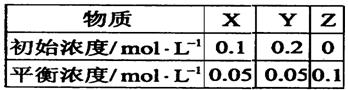 23. 一定温度时,在体积密闭容器中X、Y、Z三种气体的初始浓度和平衡浓度如下表: