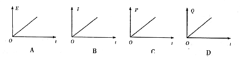 20.如图所示,一个水平放置的“∠”型光滑导轨固定在磁感应强度为B的匀强磁场中,ab是粗细、材料与导轨完全相同的导体棒,导体棒与导轨接触良好。在外力作用下,导体棒以恒定速度v向右平动,以导体棒在图中所示位置的时刻作为计时起点,则回路中感应电动势E、感应电流I、导体棒反受外力的功率P和回路中产生的焦耳热Q随时间变化的图象中正确的是