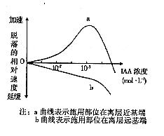 (3)IAA除具有促进生根的功能,还具有防止脱落的功能。有些研究结果如右图所示。据图可知,IAA对脱落的效应与______________________________有关。