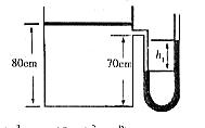 (2)(10分)一足够高的直立气缸上端开口,用一个厚度不计的活塞封闭了一段高为80cm的气柱,活塞的横截面积为0.01m2,活塞与气缸间的摩擦不计,气缸侧壁通过一个开口与U形管内的气体体积忽略不计,已知右图所示状态时气体的温度为7℃,U形管内水解面的高度差h1 = 5cm,大气压强P0 = 1.0×105Pa保持不变,水银的密度