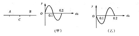 时刻A、B开始振动,且都只振动一个周期,振幅相等,A的振动图象为(甲),B的为(乙)。若由A向右传播的机械波与由B向左传播的机械波在