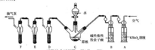 C中盛有200g原粮;D、E、F各盛装1.00mL浓度为1.00×10-3mol/L的KMnO4的溶液(H2SO4酸化)